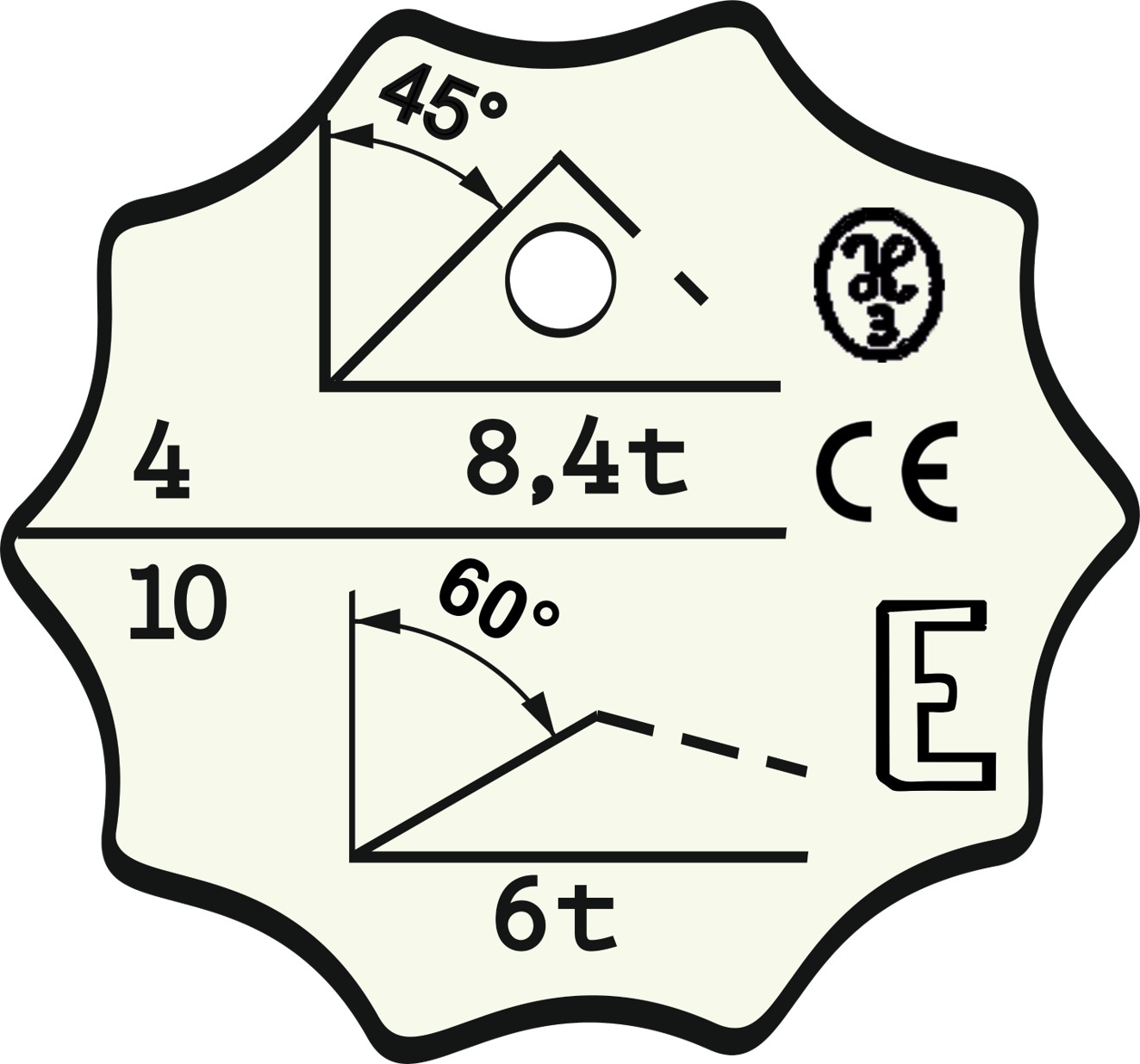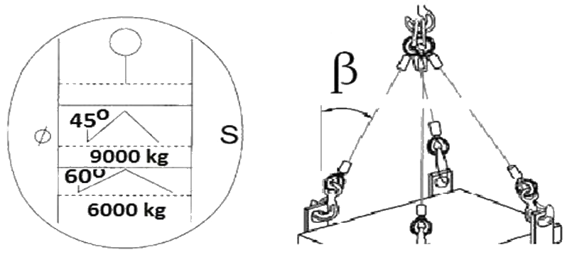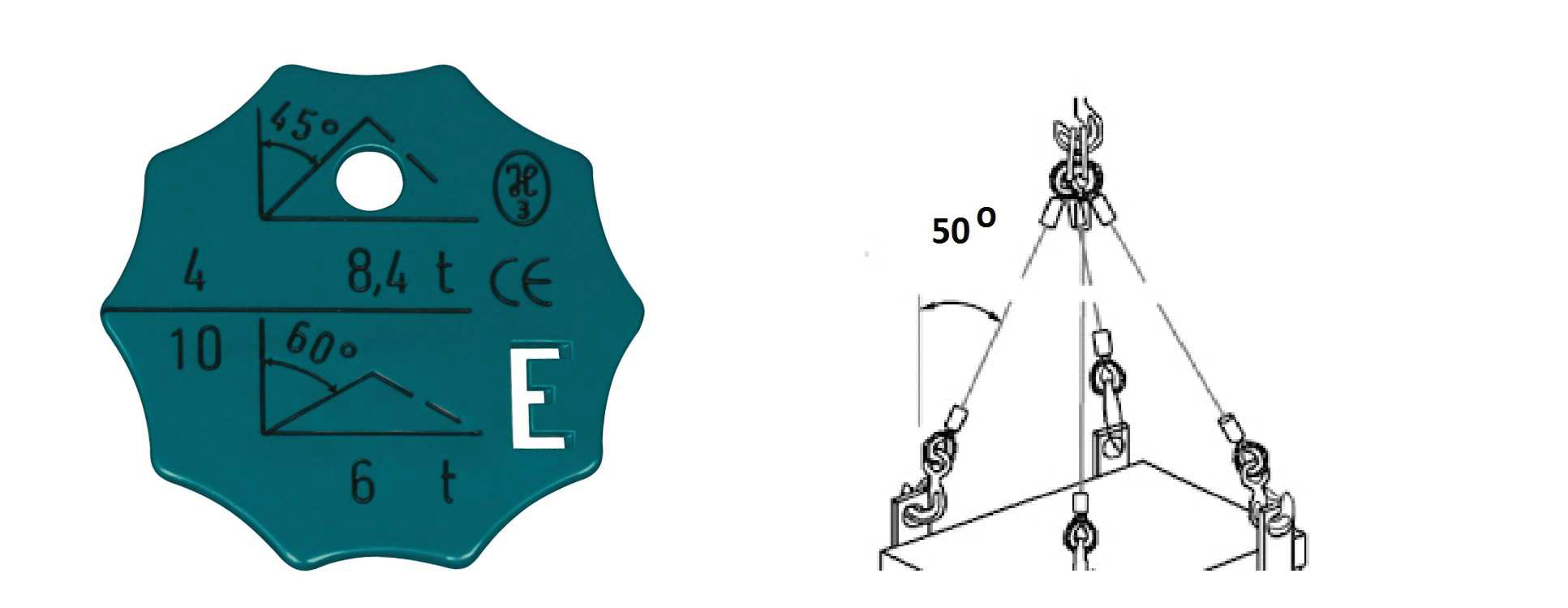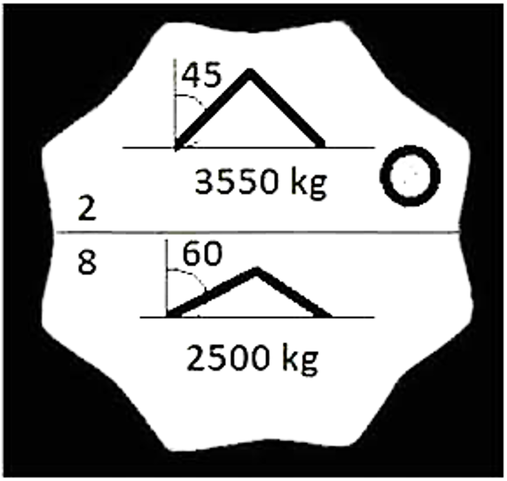 W oparciu o przedstawiony rysunek określ maksymalną masę ładunku jaką można podnieść przy pomocy zawiesia 4 cięgnowego: