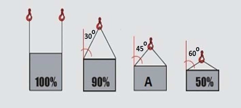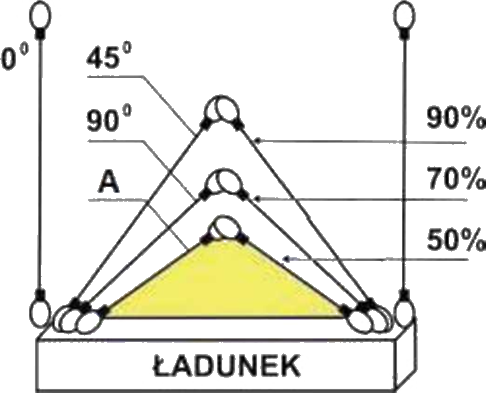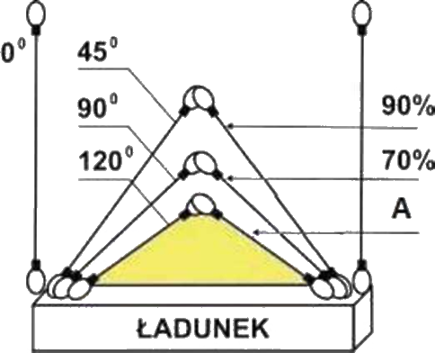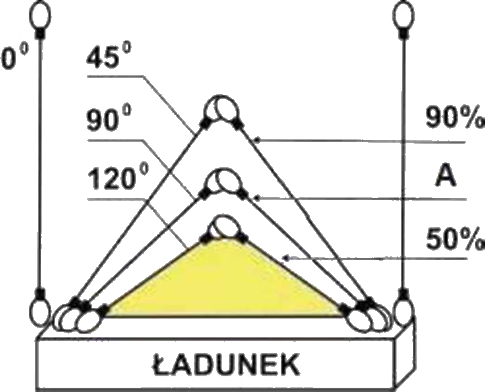 W oparciu o przedstawiony rysunek wskaż wartość A dla zawiesia dwucięgnowego :
