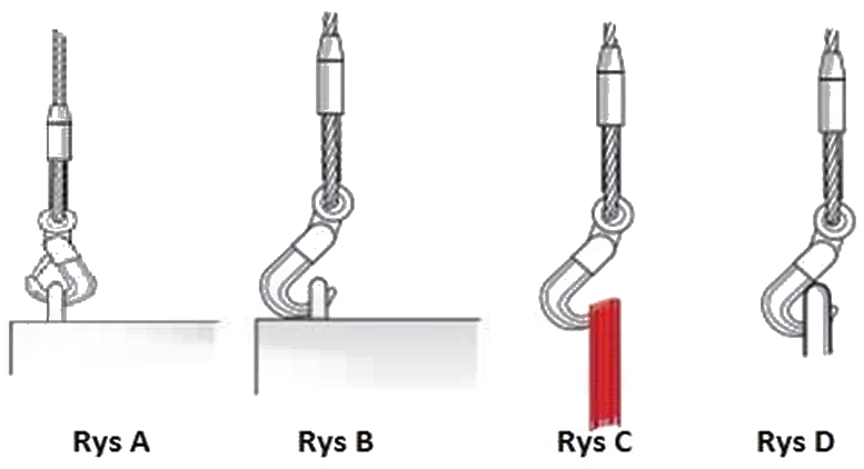 Wskaż, który ze sposobów zamocowania haka jest nieprawidłowy: