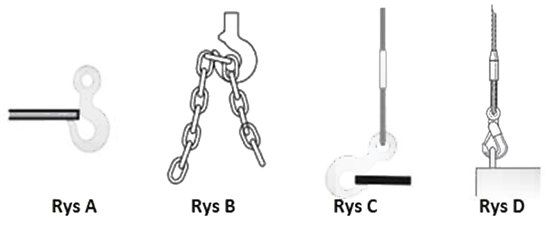 Wskaż, który ze sposobów podwieszenia ładunku jest prawidłowy: